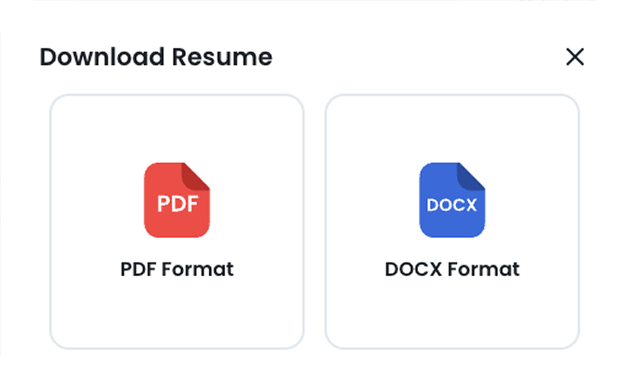 Export your resume in PDF or Word (DOCX) format, ready to submit to job applications or share with recruiters.